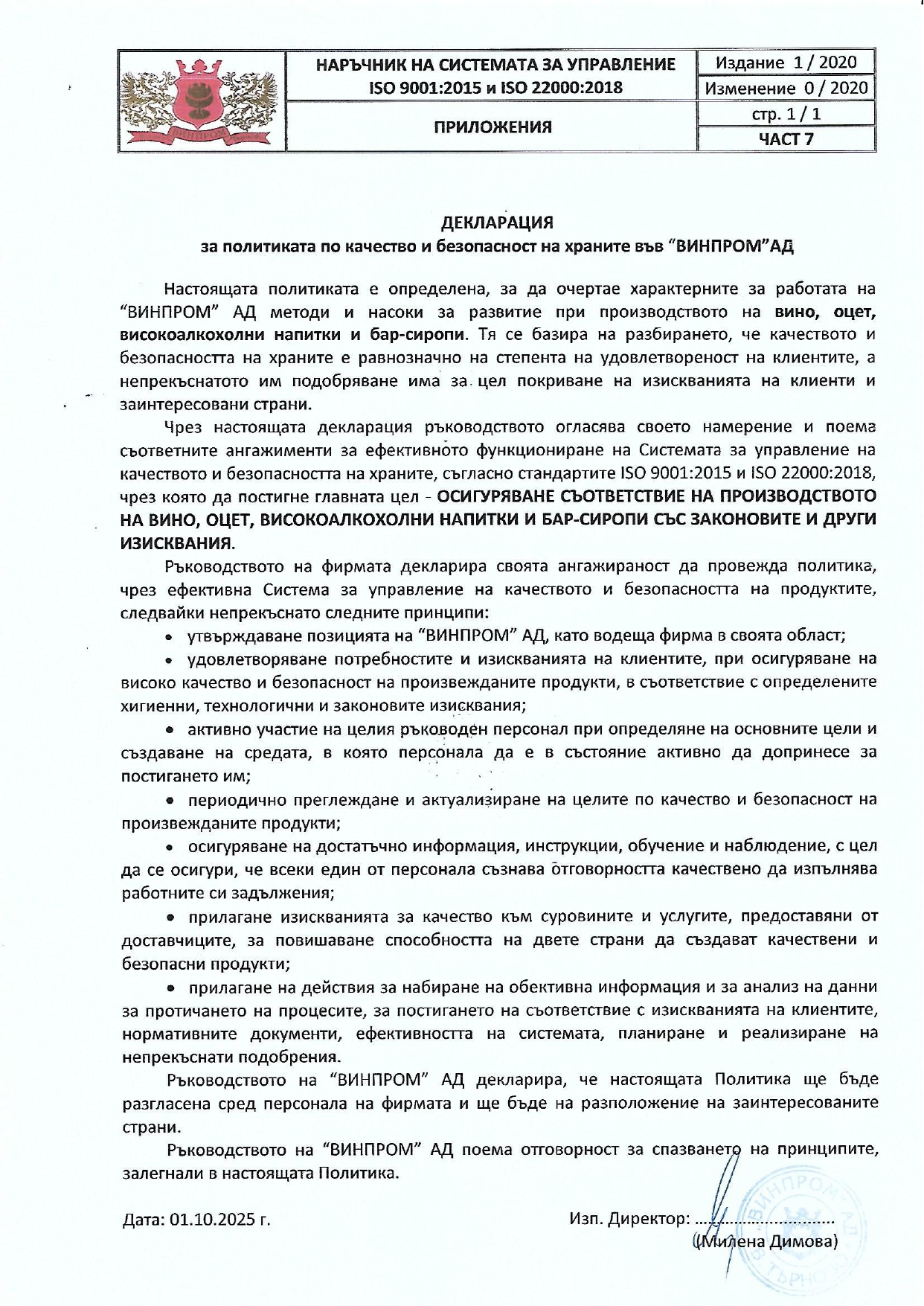 „Винпром“ АД град Велико Търново е създаден през 1947 г. като клон на Държавен спиртен монопол. Под негово управление са производствените складове във Велико Търново, Драгижево, Самоводене, Килифарево, Ресен, Дичин, Русаля, Полски Тръмбеш.